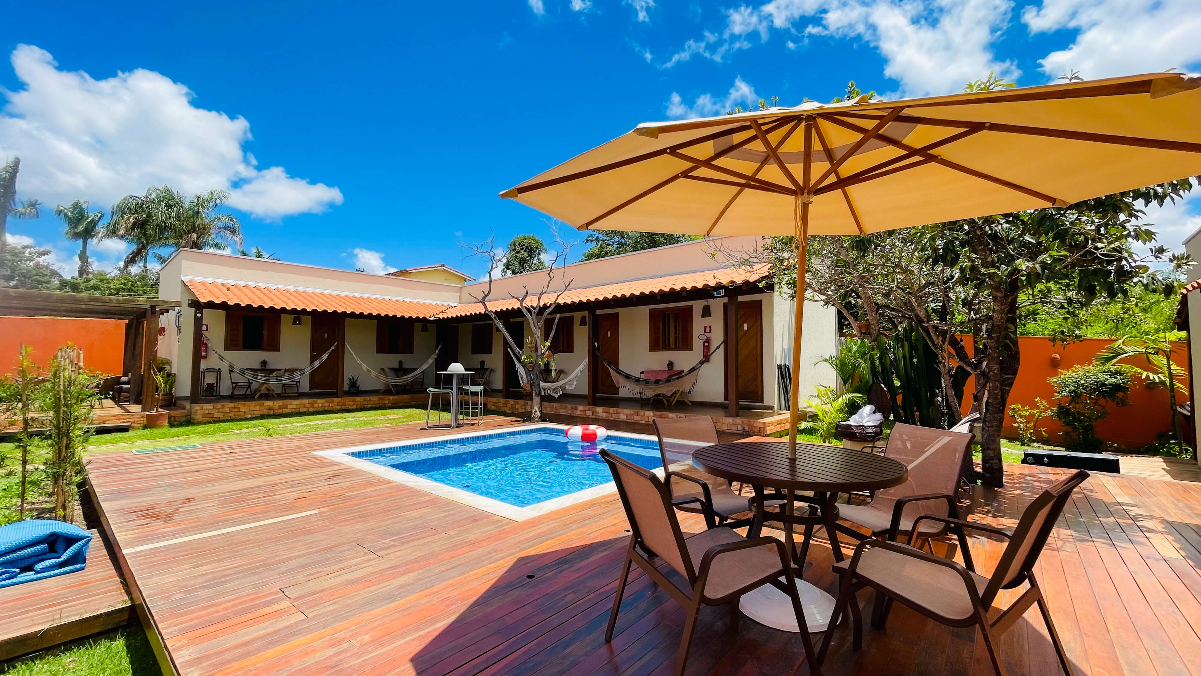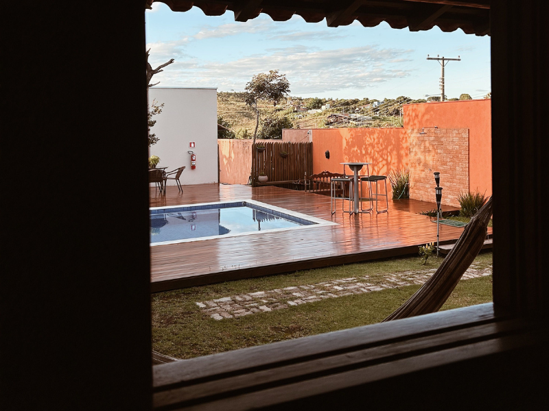 Ao lado da piscina, nosso espaço da fogueira convida para encontros aconchegantes sob o céu estrelado da Chapada. Um cantinho especial para boas conversas, risadas e momentos memoráveis, rodeado pela natureza e pelo charme rústico da Vila Bonita.