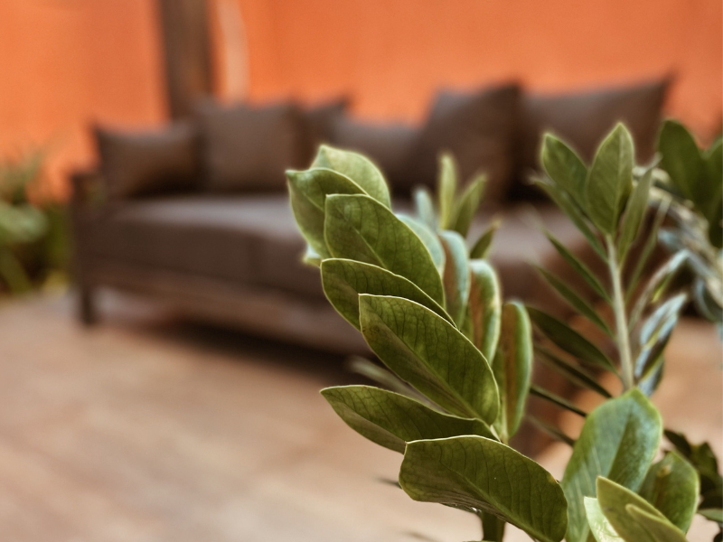 Na entrada da Vila, o espaço zen acolhe com sofás confortáveis e uma seleção de plantas que transmitem leveza e harmonia. Um refúgio ideal para quem busca relaxar, ler um livro ou simplesmente sentir a tranquilidade que envolve cada cantinho da nossa casa.