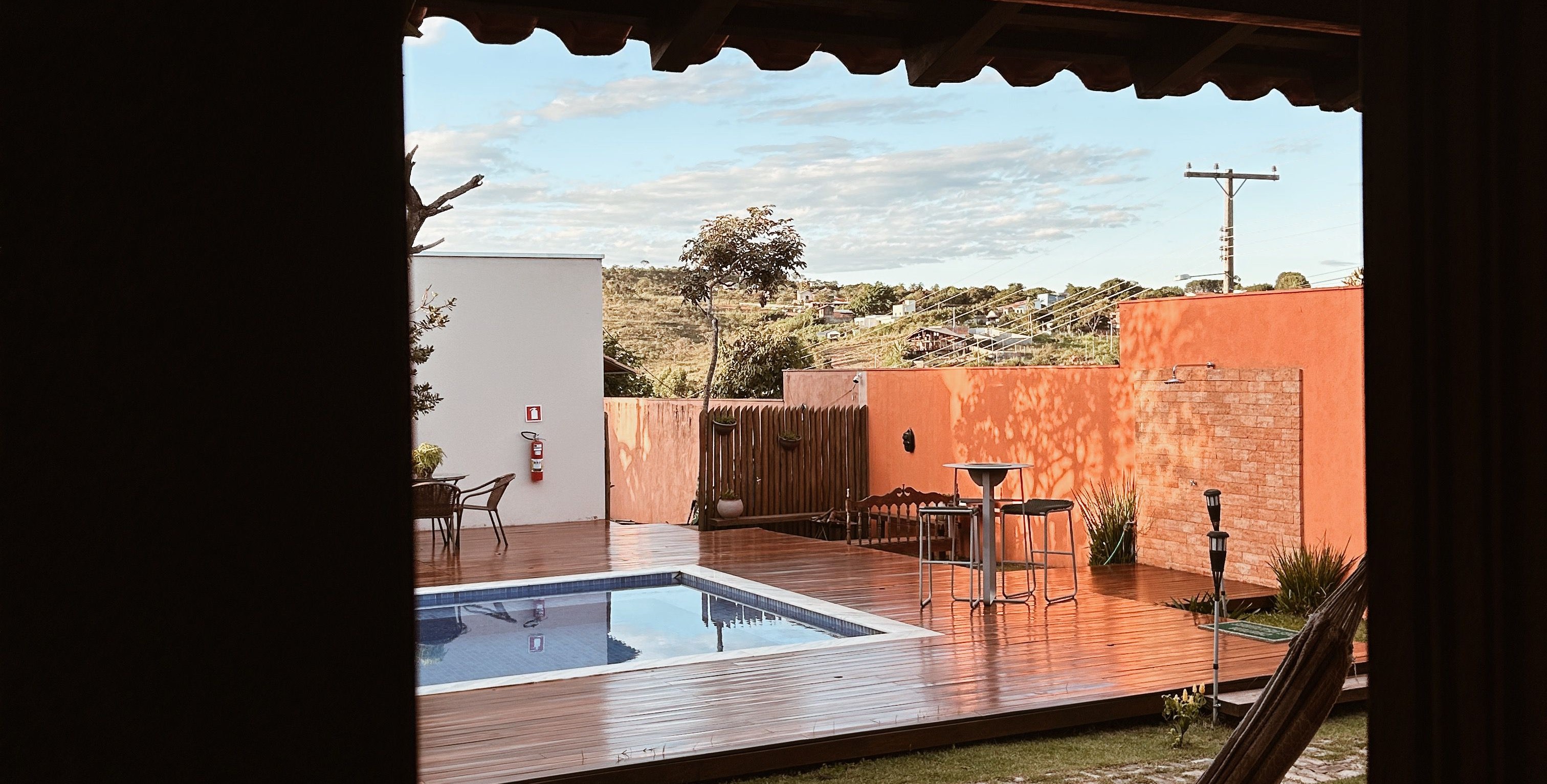 Ao lado da piscina, nosso espaço da fogueira convida para encontros aconchegantes sob o céu estrelado da Chapada. Um cantinho especial para boas conversas, risadas e momentos memoráveis, rodeado pela natureza e pelo charme rústico da Vila Bonita.